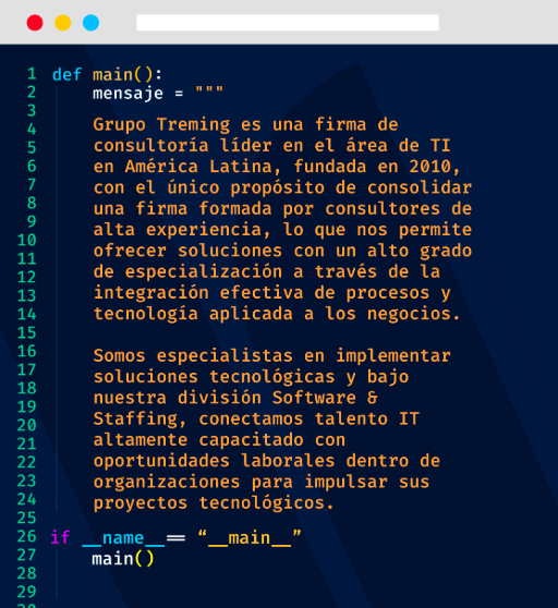 En Grupo Treming, buscamos las mejores oportunidades para que nuestro talento IT pueda desarrollar sus habilidades y crecer como profesional.